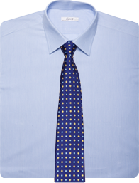 슈트보다 산뜻한 블루 와이드카라 셔츠와 같은 톤의 타이를매치하여 블루 그라데이션 스타일 연출 하였고, 타이의 엘로우 패턴이 경쾌하고 활기찬 느낌을 주어 전체적으로 트레디한 스타일을 완성 할 수 있습니다.