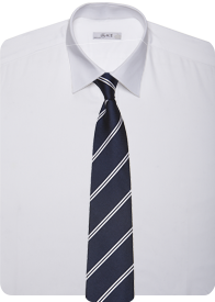 기본에 충실한 레귤러 카라 화이트 셔츠를 매치하여 그레이 수트에 부드러운 무드를 연출하고, 신뢰감을 주는 네이비+화이트 레지멘탈타이로 도시적인 V존을 완성 할 수 있습니다.
